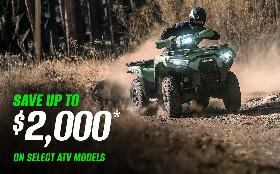 *Model & year exclusions apply. May be combined with promotional retail financing rates. Incentives are available at participating Kawasaki dealerships. Offer valid through 03/31/2026. Subject to change without notice. Offer available on approved purchases of select new unregistered Kawasaki vehicles. Valid through Mar 31, 2026